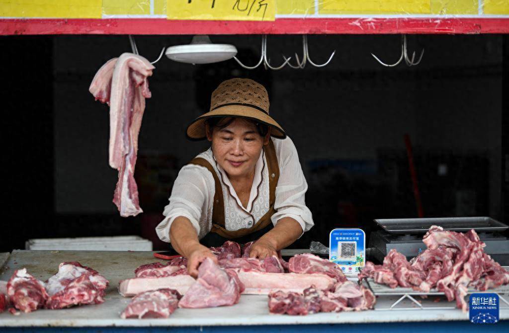10月6日开yun体育网,在海南文昌一家集贸商场,归附贸易的肉铺雇主在收拾猪肉。