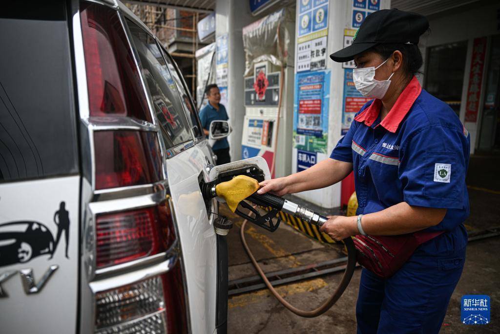 10月6日,在海南文昌一家加油站,使命主谈主员为车辆加油。