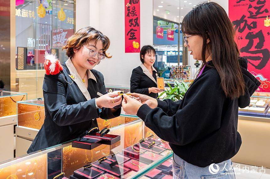 浪掷者在内蒙古呼和浩特市玉泉区七彩城一家金店内挑选首饰。丁根厚摄