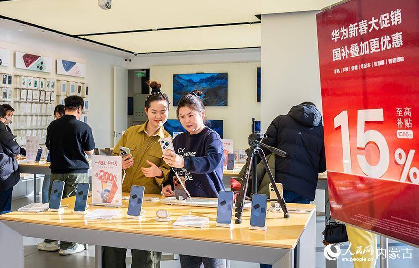 浪掷者在内蒙古呼和浩特市玉泉区七彩城一家品牌销售店内挑选手机。丁根厚摄