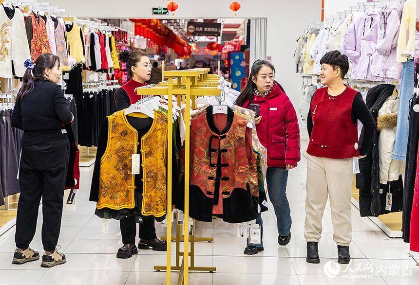 呼和浩特市玉泉区一家商超内内,市民在选购新年衣饰。丁根厚摄
