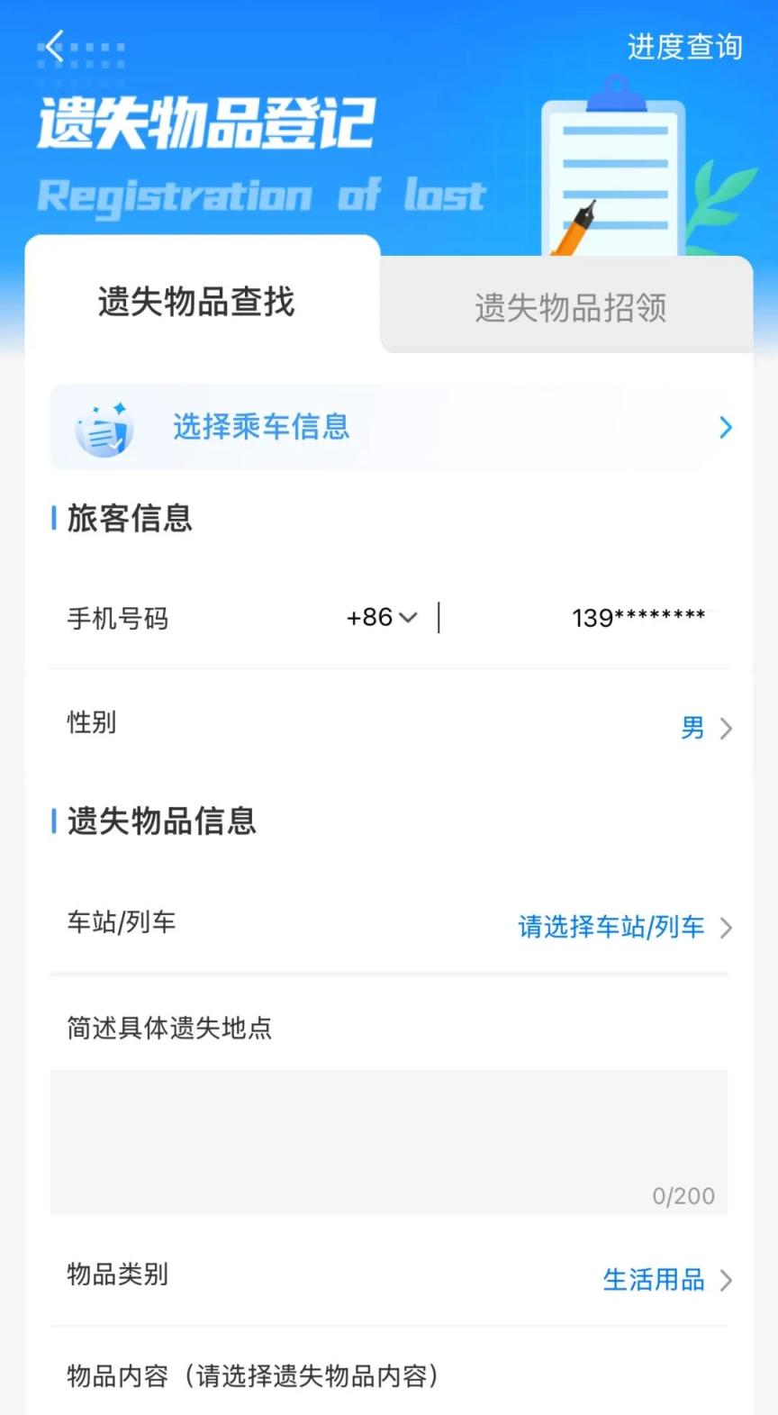 准确提供车次、场地、物品描摹、关系东谈主等信息,铁路部门将全力帮您查找,并实时求教查找情况。